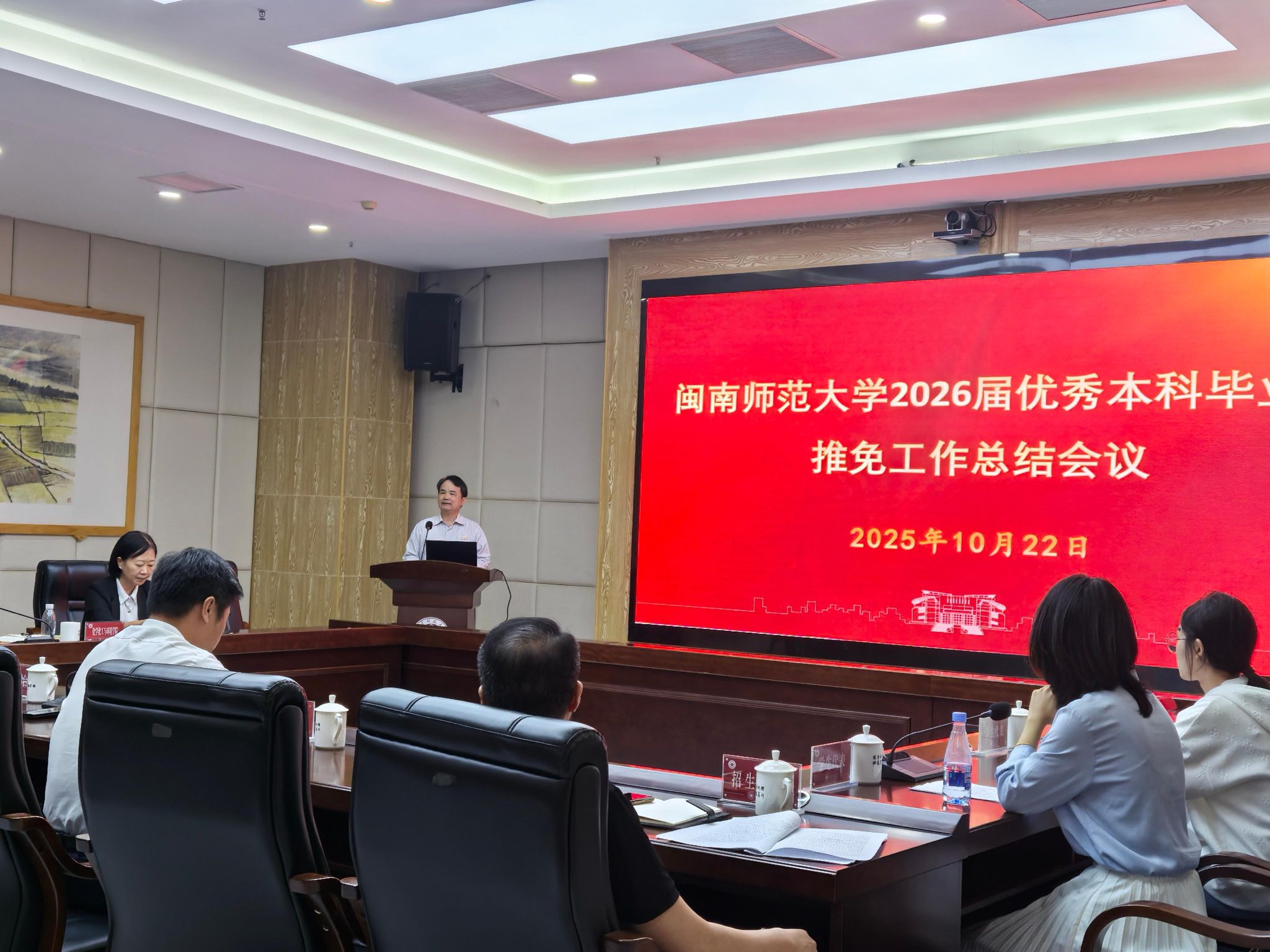10月22日,我校在科技信息楼1607会议室召开2026届优秀本科毕业生推免工作总结大会。校党委副书记、校长张龙海出席,校党委常委、副校长张宏怡主持会议。