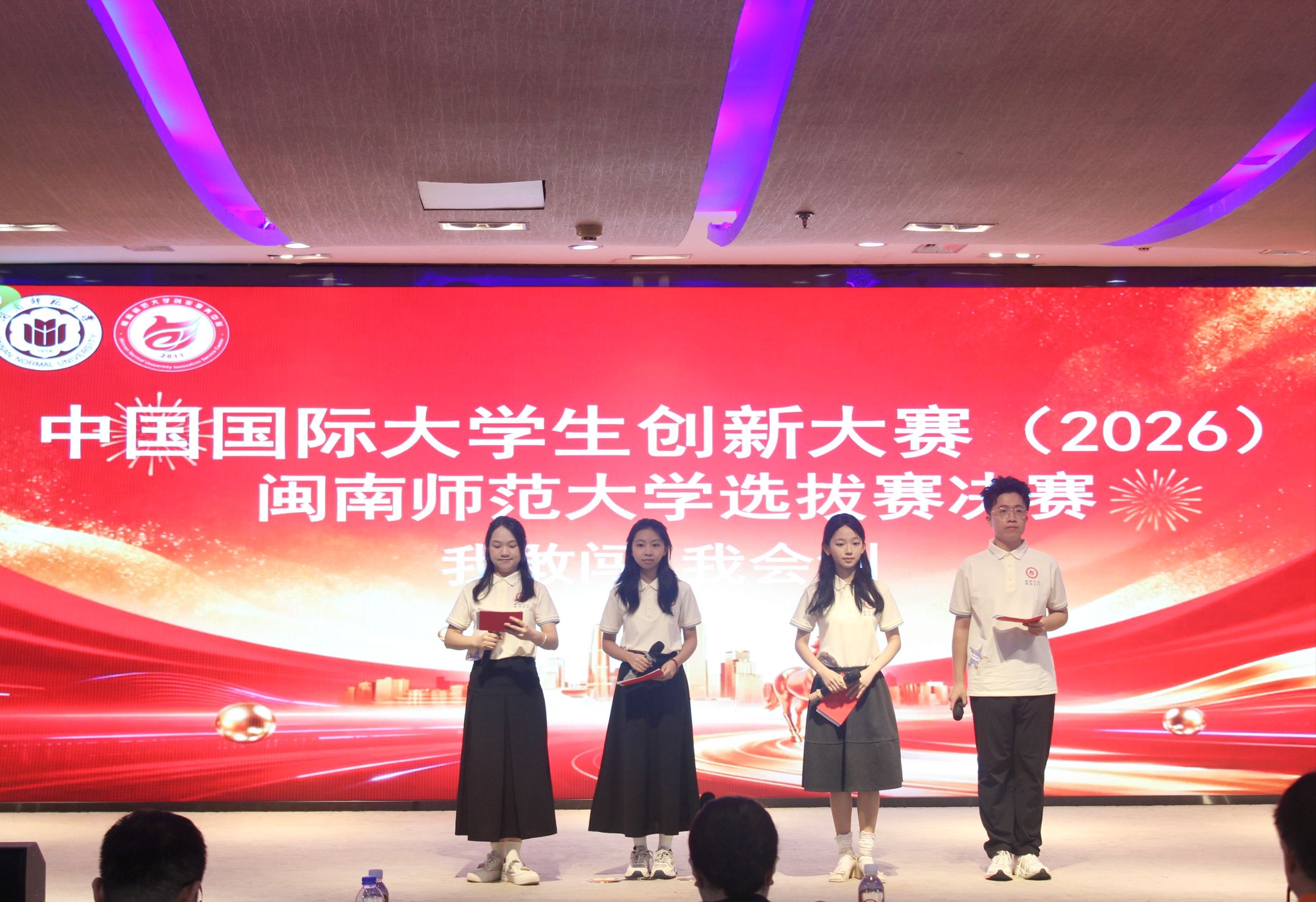 在加快建设教育强国、科技强国、人才强国的大背景下,为深入贯彻国家创新驱动发展战略,推动我校创新创业教育高质量发展,2026年4月18日,由教务处主办的2026年中国国际大学生创新大赛(2026)闽南师范大学选拔赛决赛在逸夫图书馆五楼报告厅成功举办。教务处副处长杨娟娟、袁东斌,创新创业创造学院副院长洪夏瑶等出席大赛。大赛以“我敢闯,我会创”为主题,聚焦“五育”融合创新创业实践,充分激发青年学子的创新热情与创造潜能,成为学校深化创新创业教育改革的一次集中检阅。